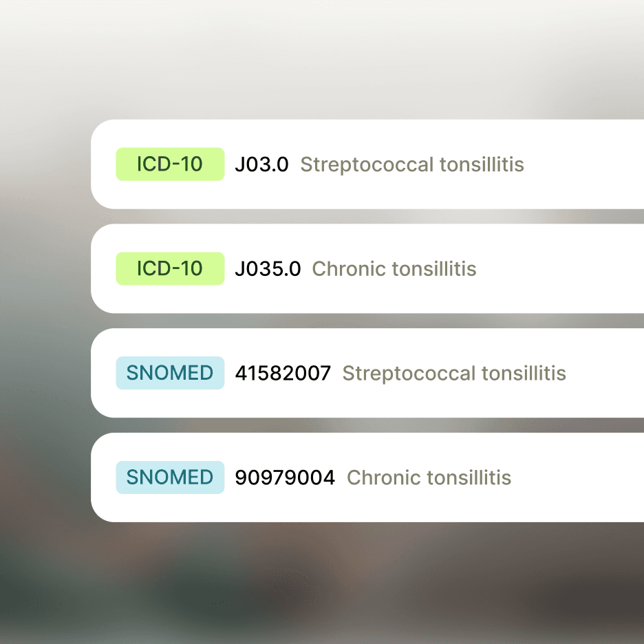 Tandem generates clinical documents from your consultations in seconds. It suggests relevant diagnosis and procedure codes, such as ICD-10 and SNOMED, and includes hands-free voice editing.