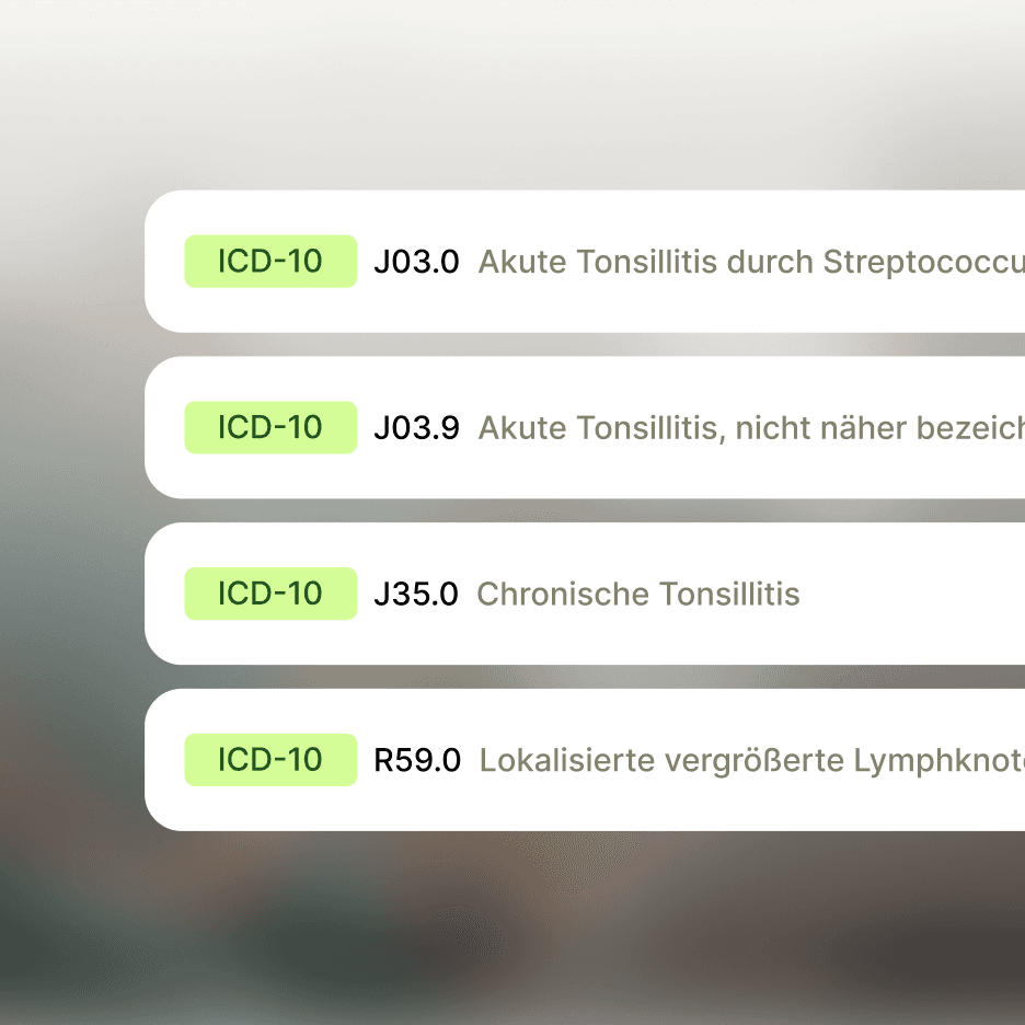 Tandem erstellt in Sekundenschnelle medizinische Dokumente auf Basis Ihrer Konsultationen. Passende Diagnose- und Prozedurcodes werden direkt vorgeschlagen, und die Bearbeitung ist per Spracheingabe möglich.