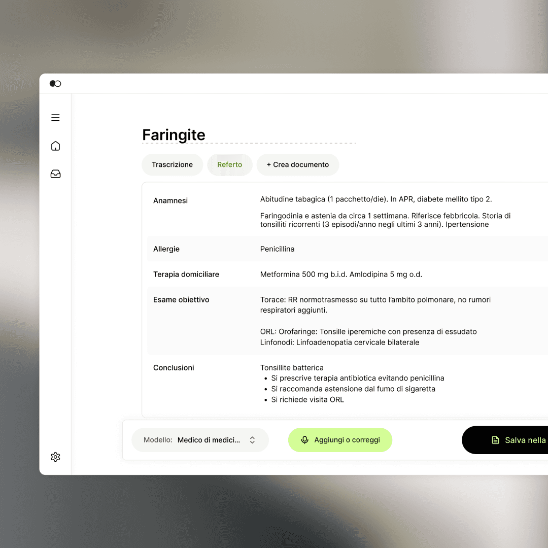 Tandem genera note cliniche e documenti strutturati a partire dalle tue consultazioni. Rivedi, modifica e trasferisci nella cartella clinica in un clic, senza digitare una parola durante la visita.