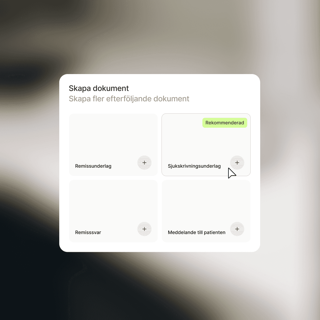 Skapa kliniska dokument omedelbart. Få remisser, sjukintyg och besöksrapporter med ett klick baserat på din konversation.